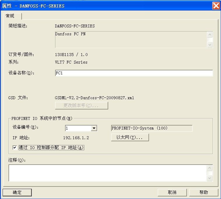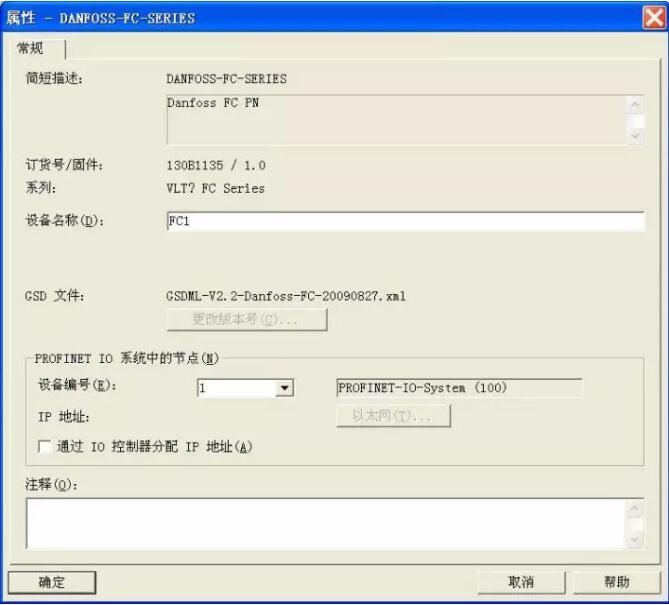 丹佛斯 FC300 係列變頻器 ProfiNet GSD 文件名為“GSDML-V2.2-Danfoss-FC-20090827. xml”(可從丹佛斯官網下載)。