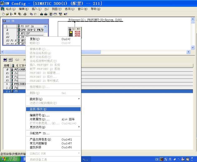 STEP7 硬件配置的 ONLINE 模式提供簡易的在線調試功能,可以操作現場變頻器, 檢查配置和接線是否正確。在 ONLINE 模式,PLC 運行狀態下,選中從站成人午夜在线观看的 圖標,再點擊從站的 1.2 插槽,示例中顯示為“PPO 4 – 6/6 Words,Danf~”模塊,按鼠標 右鍵,選擇“監視/修改(M)”。