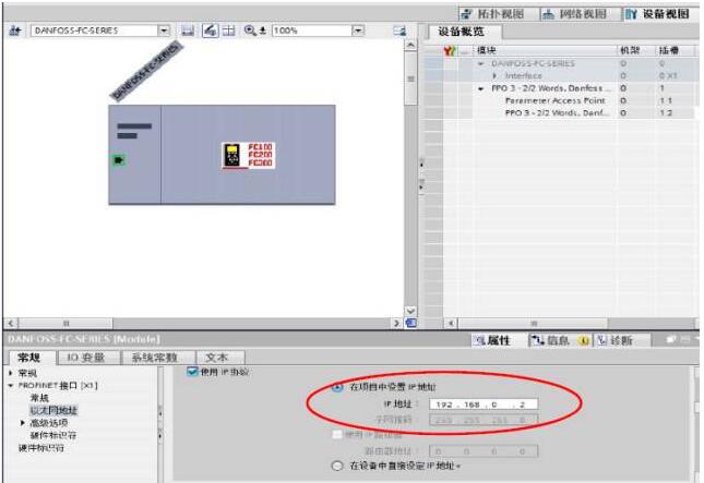 1、當 PLC 硬件配置中變頻器 IP 地址為“在項目中設