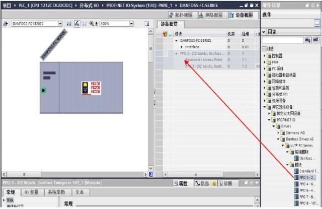 七、:配置成人午夜在线观看(進入‘網絡視圖’-打開右側‘硬件目錄’-選擇‘Danfoss Drives AS-前端模塊’-‘Danfoss-FC-SERIES’),如圖七所示: