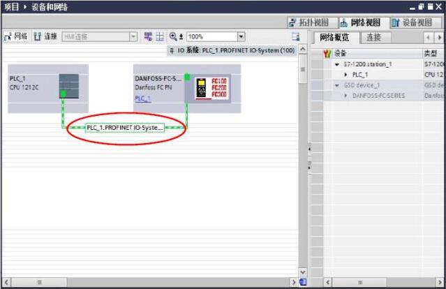 十、網絡配置:將成人午夜在线观看加入到 ProfiNET 網絡總線上,點擊‘設備和網絡’-‘選 擇變頻器’-‘選擇 I/O 控製器’-‘PLC1_-PROFINET 接口_1’,如圖十一所示,配置完成 後,如圖十二所示: