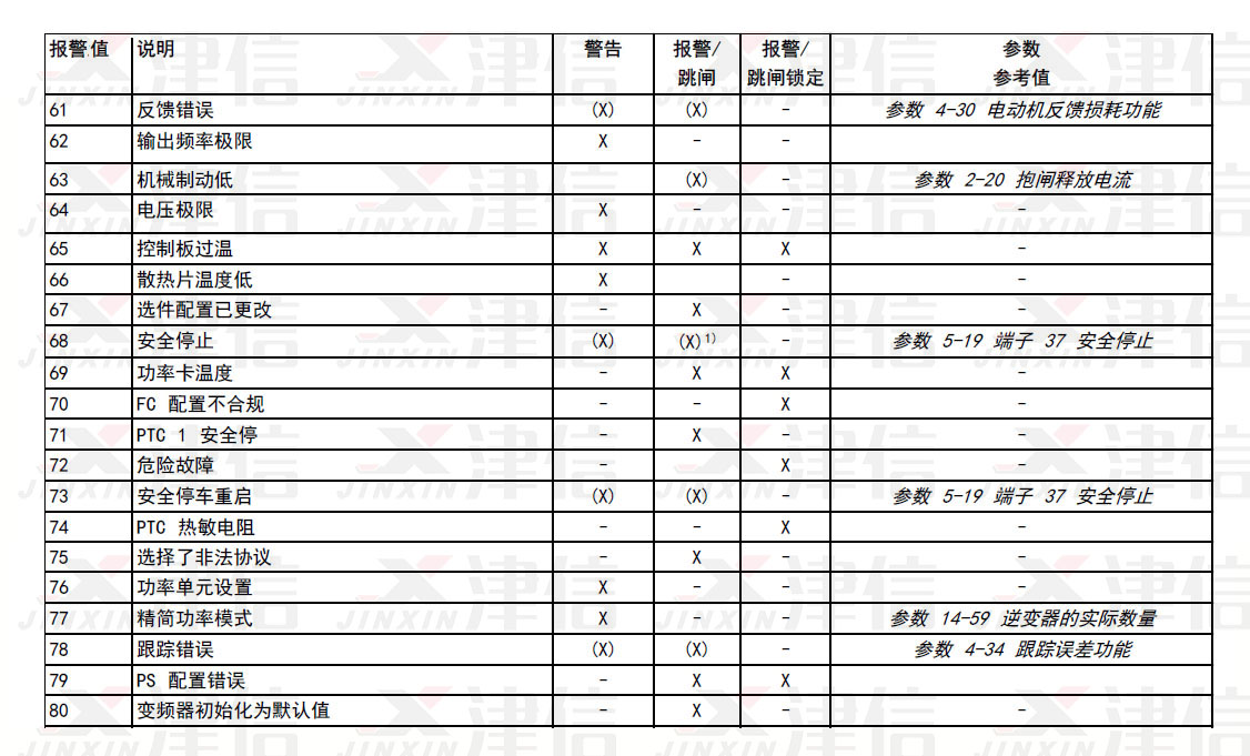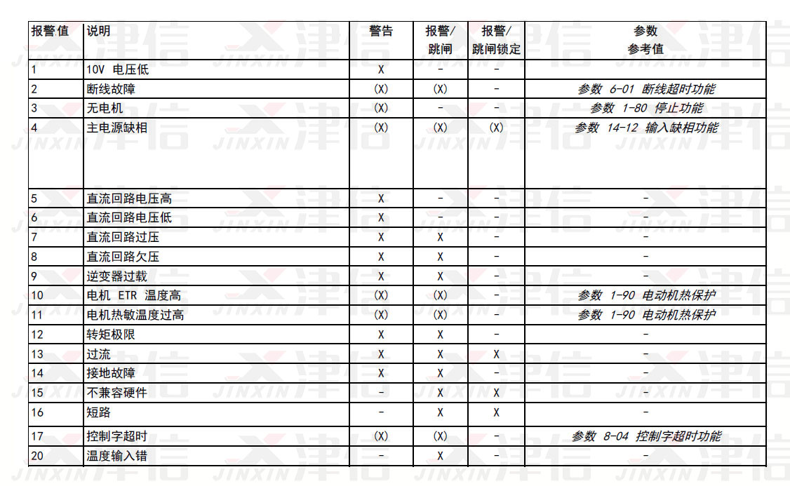 當即將發生報警狀況或存在異常運行條件並可能導致變頻器發出報警時,將發出警告。異常狀況消失時,警告會自行清除。