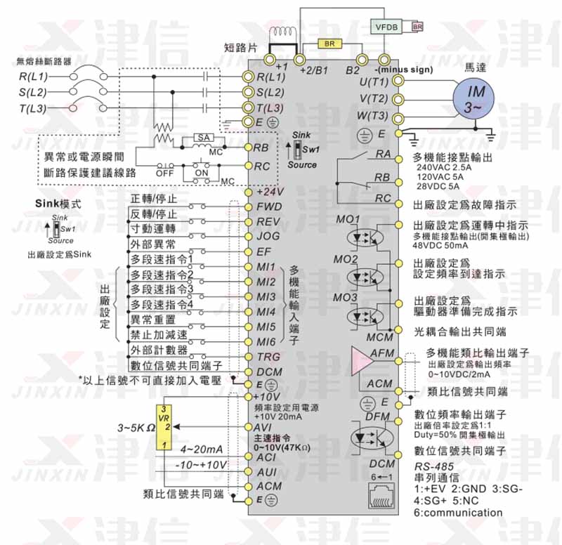 DELTA台達VFD係列包括VFD-B,VFD-E,VFD-G,VFD-L,VFD-M,VFD-F,VFD-V,VFD-S,VFD-VE,VFD-VJ等多係列變頻器,其接線圖大全如下: