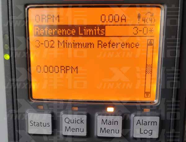 使用上下鍵選擇3-02,進行最小頻率設置,此時的單位是RPM轉速