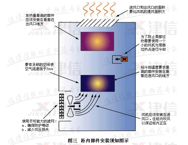 8) 確保櫃體的散熱量大於變頻器的發熱量;