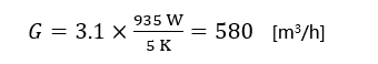 這個公式給出了對應海拔0的散熱通風量,需要注意的是散熱時主要考慮空氣的質量流量而不是體積流量,因為質量流量決定了總冷卻量。通常出風口和進風口的溫差為5K(相當於5°C)。同時需要注意的是濕空氣的熱傳遞能力要比幹燥空氣差,另外,空氣密度隨著海拔和溫度的增高而降低。通常情況下,以下的簡化公式就可以用於計算櫃體散熱所需要的通風量: