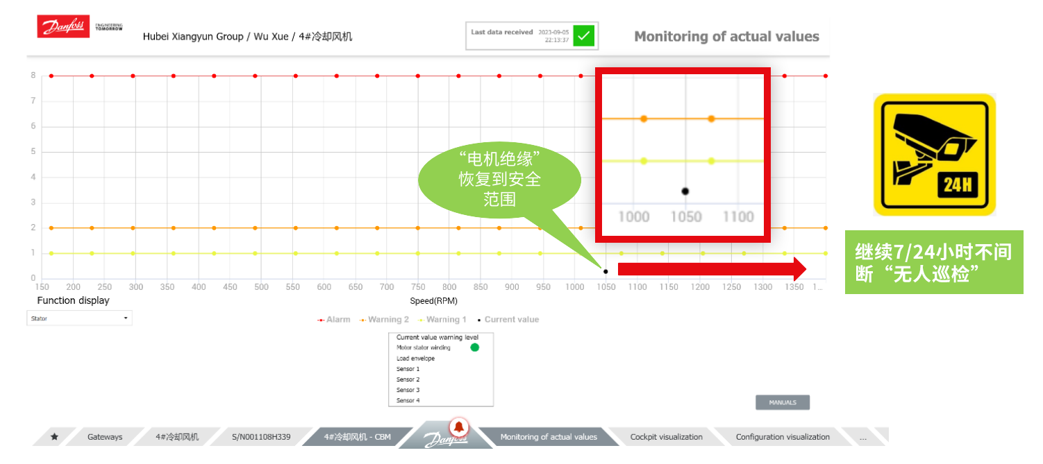 改造方案的目的是讓現場技術人員能夠對係統進行實時監控,同時可以提前預警,防止非計劃停機。祥雲化工最終同丹佛斯達成一致,合作開發數字化解決方案,增加丹管家+CBM(電機繞組絕緣,電機負載包絡),並於2021年年底正式上線。