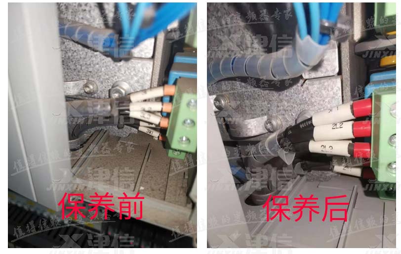 某食品飲料公司現有各品牌變頻器100多台,由於變頻器長期使用,內部積灰較多,導致變頻器散熱情況較差,部分變頻器的端子接線不符合規範,通過維護保養,消除使用隱患,確保變頻器運行穩定。