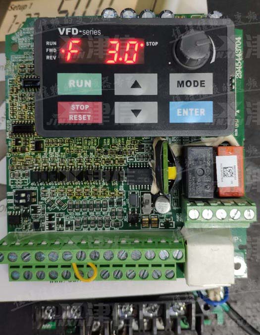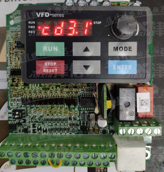 用戶送修一台台達C200係列變頻器到上海午夜视频福利維修服務中心(如下圖1),送電顯示cd3.1(如下圖2所示),不可複位,斷電重新上電後依舊報警,查看C200係列說明書可知,該故障為W相電流偵測異常。