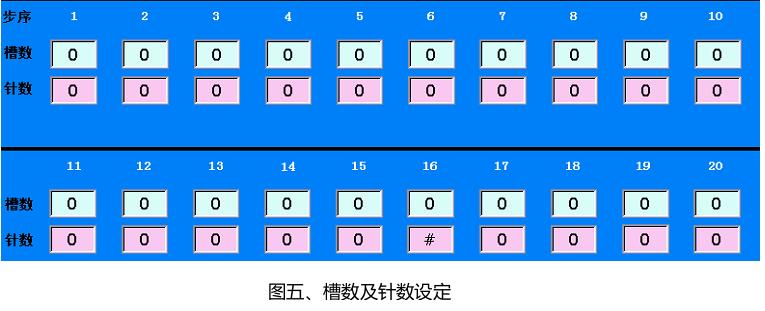 用戶可以通過HMI一鍵生成“逐槽綁”數據,也可以自行設定綁紮槽位順序,自定義每一槽針數,還可以設定定子分度方向,從而實現逐槽綁、花式綁、正綁、反綁。設定界麵如圖五所示。