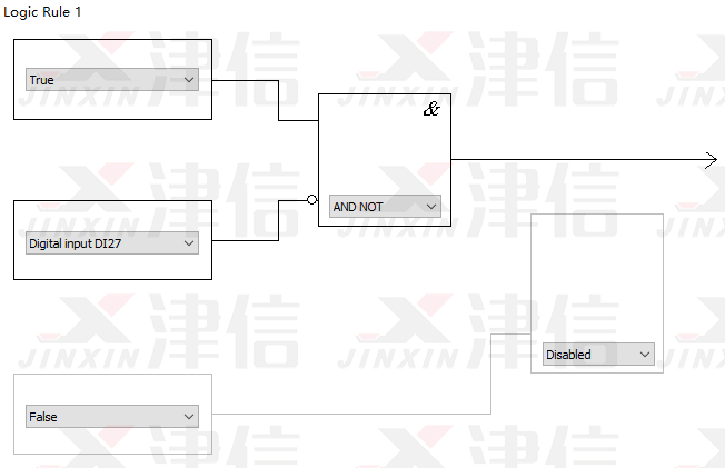 Logic Rule 1判斷是否符合停止條件。在運行過程中,如果按下停止按鈕,27號端子斷開,經過邏輯判斷,滿足停機要求,變頻器將停止輸出。