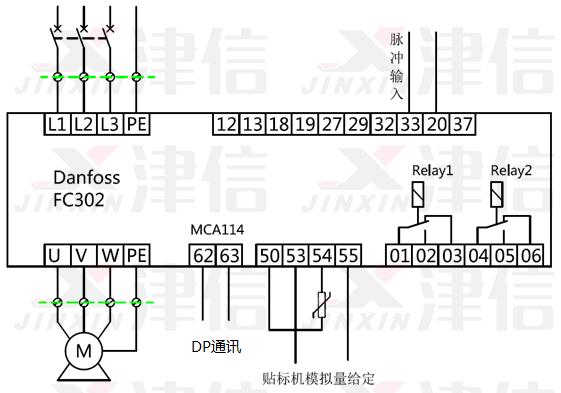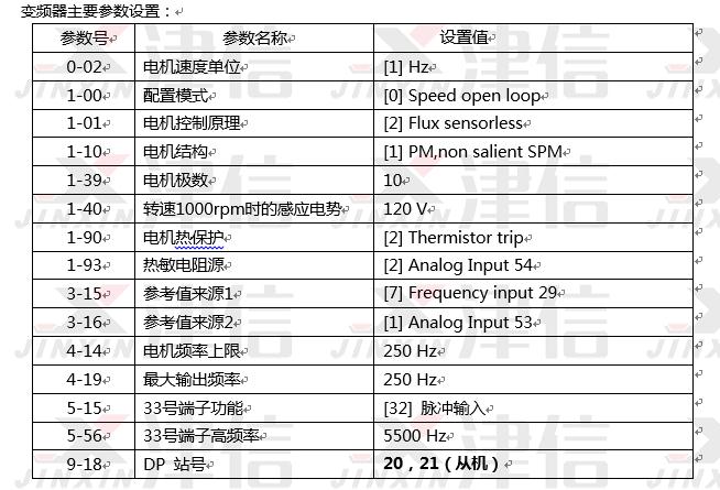 另一台變頻器做從機,采用丹佛斯特有的脈衝主從控製方式,跟隨主機輸出。實踐證明此種控製方式生立,兩台電機轉速同步性非常好,轉速隻有很小的誤差。唯一的缺點是從機的報警狀態無法被係統檢測到。