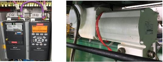 用兩台Danfoss OGD電機替換原SSB Duradrive同步電機,用2台FC302驅動器內置MCA114 Profibus-DP通訊卡驅動兩台OGD電機,替換原係統的VLT5000變頻器。