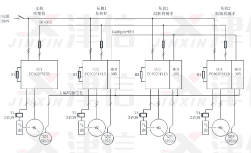 現場實際運行證明MCO305同步控製功能加上帶有編碼器反饋的異步電機的吹瓶機係統完全很好的達到了設備的功能和生產要求。
