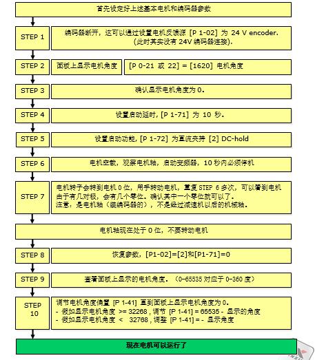 四、轉子磁極位置偏差校準辦法:永磁同步電機的矢量控製需要知道電機轉子的確切角度位置,由於廠家安裝的原因,絕對編碼器反饋的位置與電機轉子的零位存在相位差,所以需要通過調試測得此相位差。丹佛斯FC302驅動器測試此相位差的具體調試步驟如下: